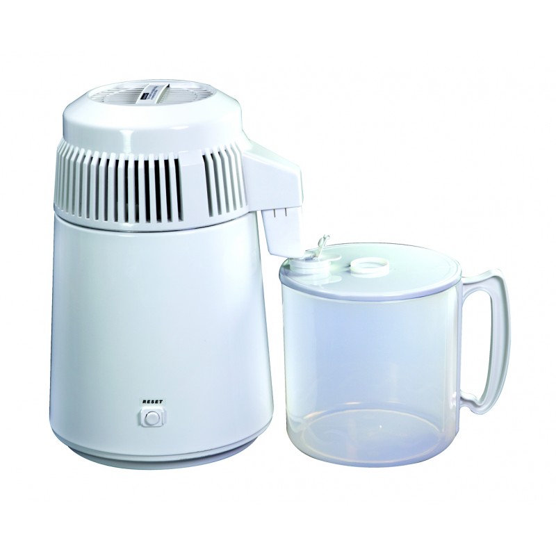 SENCILLO Y PRÁCTICO APARATO. BASTA CON LLENAR LA CUBA CON AGUA DEL GRIfO PARA OBTENER 4 LITROS DE AGUA DESTILADA EN UN TIEMPO APROXIMADO DE 5 HORAS. fUNCIONAMIENTO TOTALMENTE AUTOMÁTICO Y SILENCIOSO. LA LIMPIEZA DE LA CUBA RESULTA CÓMODA Y RÁPIDA. EL AGUA RESULTANTE TIENE UNA ALTA PUREZA (ENTRE 2 Y 10 MG/LITRO DE RESIDUO SÓLIDO) Y PUEDE EMPLEARSE EN MULTITUD DE APLICACIONES EN LA CLÍNICA Y EL LABORATORIO DENTAL (AUTOCLAVES, REALIZACIÓN DE MEZCLAS, MÁQUINAS GENERADORAS DE VAPOR, ETC.).