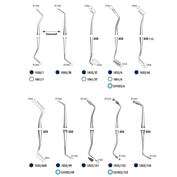 Instrumentos para obturación y modelado de todo tipo de materiales plásticos, auto y fotopolimerizables, como cementos, composites fondos de cavidad y análogos.2,5mm – 1,5mm.