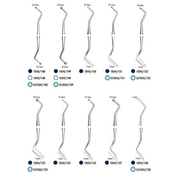 Instrumentos para obturación y modelado de todo tipo de materiales plásticos, auto y fotopolimerizables, como cementos, composites fondos de cavidad y análogos.1,5mm – 2,5mm.