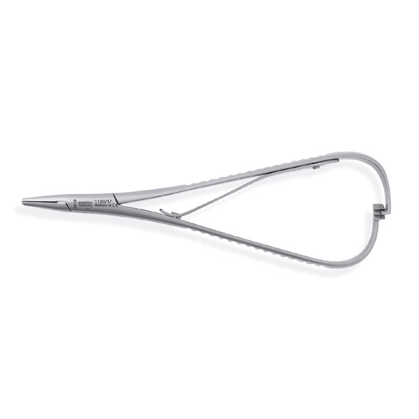 Porta-agujas con dientes cruzados. 17cm. MATHIEU.
