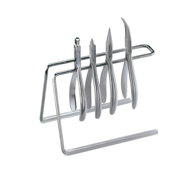 Soporte para pinzas: acero inoxidable. Pies de silicona. Para 6 o 8 piezas.
