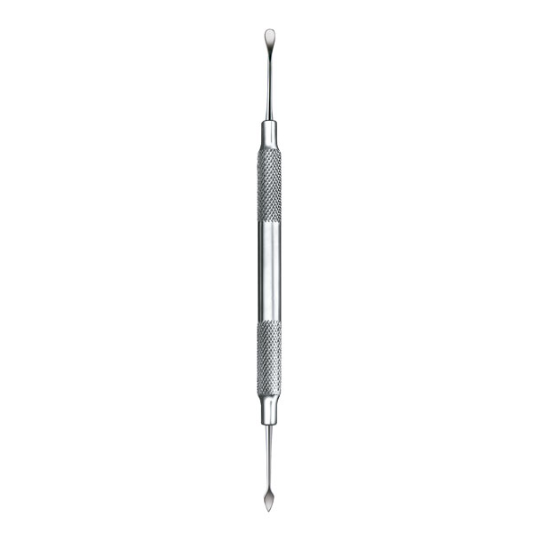 Periostótomos especiales para la cirugía periodontal y mucogingival.Periostótomo combinado para separar las papilas, el borde gingival (extremo en forma de lanza) y el colgajo mucoperióstico ( punta de trabajo redonda).