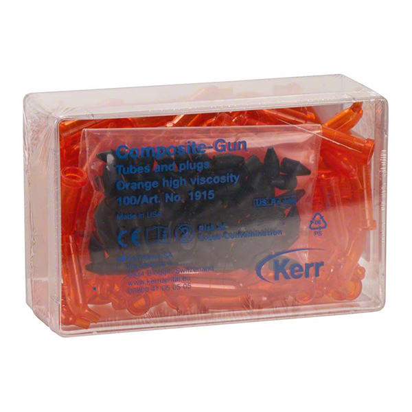 Estuches de repuestos de 100 piezas. Puntas y émbolos, naranjas alta viscosidad.