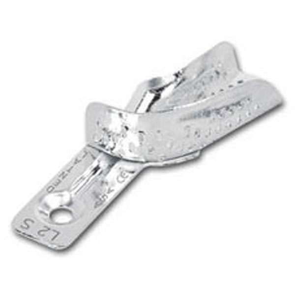 Cubetas para impresiones en edéntulos, sólidas, de acero inoxidable con reborde.