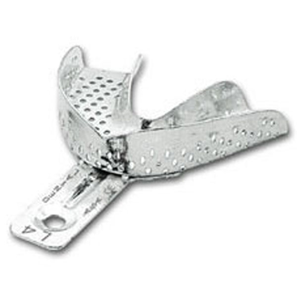 Cubetas para impresiones en edéntulos, sólidas, de acero inoxidable con reborde.