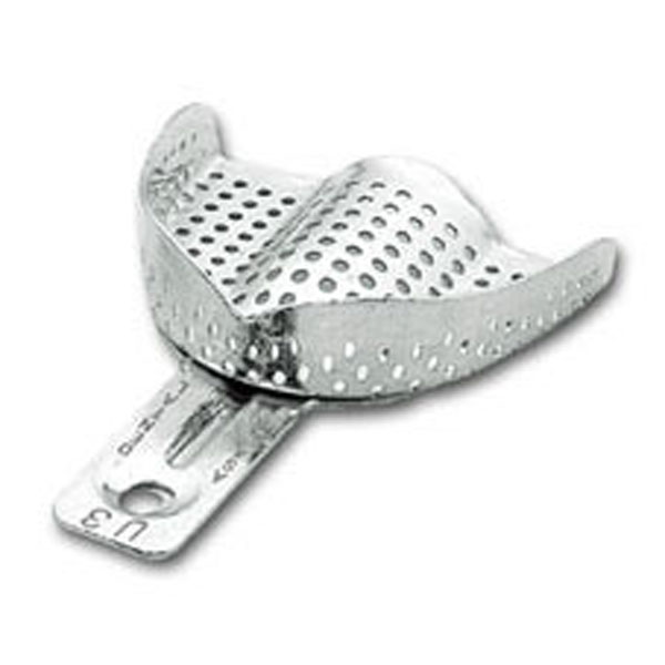 Cubetas para impresiones en edéntulos, sólidas, de acero inoxidable con reborde.