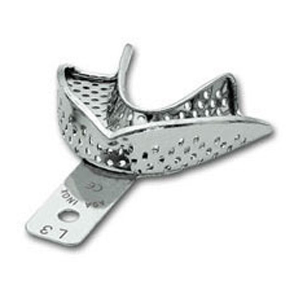 Cubetas perforadas para impresiones, fabricadas en acero inoxidable con reborde de retención. PERMA-LOCK perforada L3