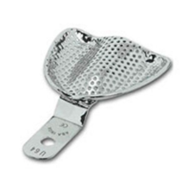 Cubetas para impresiones en edéntulos, perforadas, de acero inoxidable con reborde.