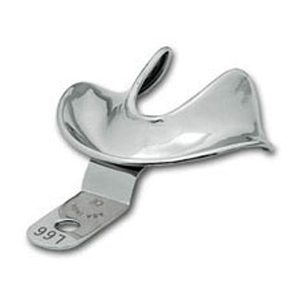Cubetas para impresiones en edéntulos, sólidas, de acero inoxidable con reborde.