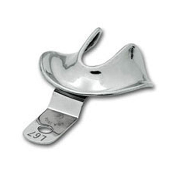 Cubetas para impresiones en edéntulos, sólidas, de acero inoxidable con reborde.