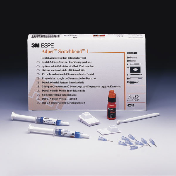 Adhesivo dentinario monocomponente, basado en la nanotecnología, fotopolimerizable,dispensado en vial o monodosis.Estuche de Introducción (botella).1 botellita de 6g de Adper Scotchbond 1 XT.2 jeringas de ácido fosfórico.50 puntas dispensadoras de ácido.48 pocillos de mezcla,1 mango y 60 puntas de pincel.Instrucciones de uso y guía pictórica.