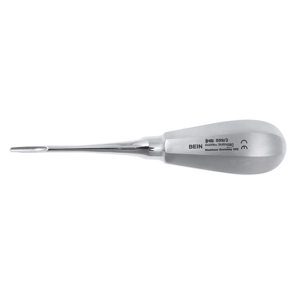 Intrumentos específicos para la remoción y posterior extracción de dientes, fragmentos y raíces. Ejercen la función de leva y palanca.3,5 mm. Elevadores de Bein.
