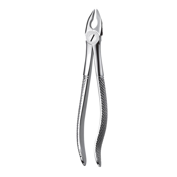 forceps de extracción superior, con un diseño estilizado que permite una sujeción segura y profunda sobre el cuello del diente. Permite ejecutar el movimiento de rotación del diente con más libertad que con las pinzas estándar.