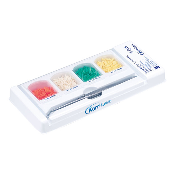 Cuñas de alta calidad fabricadas en madera de arce inastillable. Punta ligeramente doblada para no herir las papilas. Ocho tamaños con código de color que se adaptan perfectamente a la morfología interdental, optimizando los puntos de contacto.