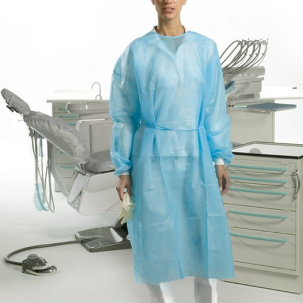 Bata con puño de algodón (longitud 110 cm). Color azul. 50 unidades.
