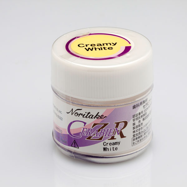 Presentación: Bote 10 gr. Cerámica Luster, color Creamy White para sistema Cerabien CZR. Creamy White es usado para lograr un color denso, lechoso. También para ser mezclado y usado en combinación con otros tonos. Porcelana Luster (translucidos opalescentes) esta diseñada para recrear las sutiles complejidades del color y textura del esmalte natural. Debido al fino tamaño de las partículas que la componen, la porcelana Luster puede lograr un reflejo selectivo, lo cual asegura una Opalescencia que luzca como el diente natural. La Porcelana Luster Noritake exhibe un mínimo desgaste en la boca debido a partículas mas pequeñas y consistentes, dando por resultado un menor desgaste de los dientes antagonistas.