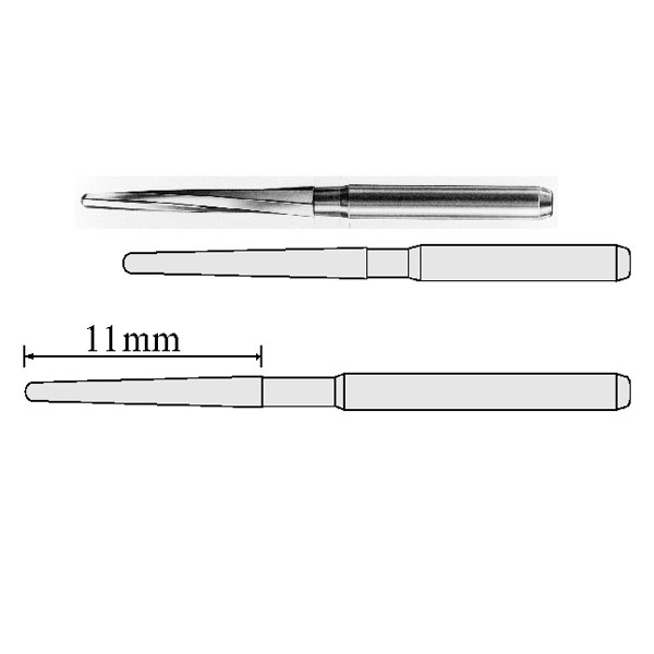 fresa para apertura de la camara pulpar.Medidas: 23 mm. fG x 0,11 mm.Envase 5 unidades.