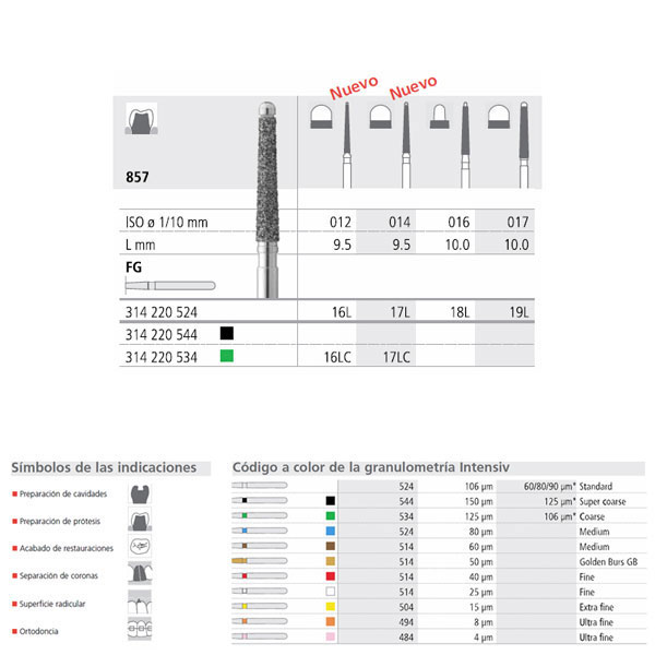 fresas de diamante y carburo-tungsteno de alta calidad. Acabado muy uniforme, de bajo desgaste y duración muy superior a otras marcas (2-3 veces más). Eliminación de restos mejorado y optimas propiedades de enfriamiento. Tipos de Turbina, Contra-ángulo y Pieza de mano.Caja de 6 unidades.