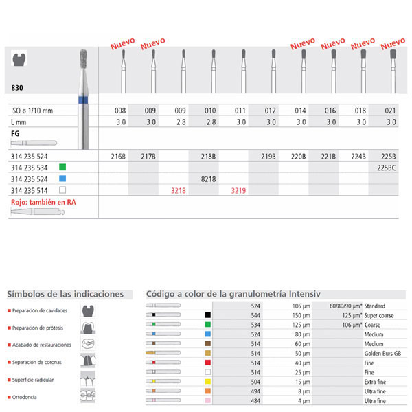 fresas de diamante y carburo-tungsteno de alta calidad. Acabado muy uniforme, de bajo desgaste y duración muy superior a otras marcas (2-3 veces más). Eliminación de restos mejorado y optimas propiedades de enfriamiento. Tipos de Turbina, Contra-ángulo y Pieza de mano.Caja de 6 unidades.