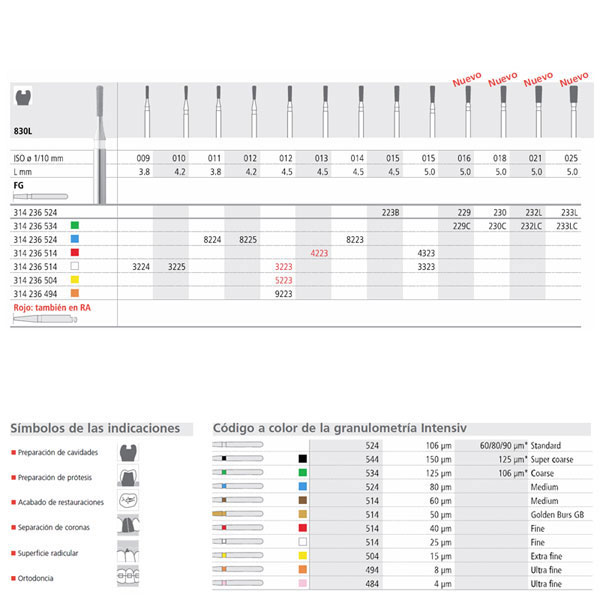 fresas de diamante y carburo-tungsteno de alta calidad. Acabado muy uniforme, de bajo desgaste y duración muy superior a otras marcas (2-3 veces más). Eliminación de restos mejorado y optimas propiedades de enfriamiento. Tipos de Turbina, Contra-ángulo y Pieza de mano.Caja de 6 unidades.