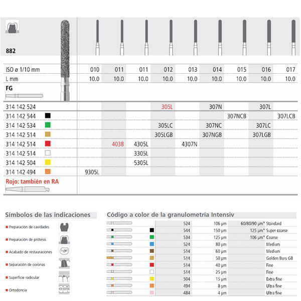 fresas de diamante y carburo-tungsteno de alta calidad. Acabado muy uniforme, de bajo desgaste y duración muy superior a otras marcas (2-3 veces más). Eliminación de restos mejorado y optimas propiedades de enfriamiento. Tipos de Turbina, Contra-ángulo y Pieza de mano.Caja de 6 unidades.