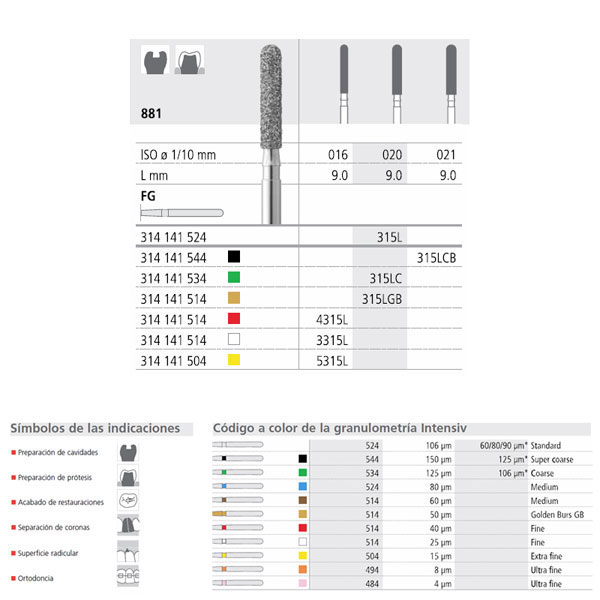 fresas de diamante y carburo-tungsteno de alta calidad. Acabado muy uniforme, de bajo desgaste y duración muy superior a otras marcas (2-3 veces más). Eliminación de restos mejorado y optimas propiedades de enfriamiento. Tipos de Turbina, Contra-ángulo y Pieza de mano.Caja de 6 unidades.