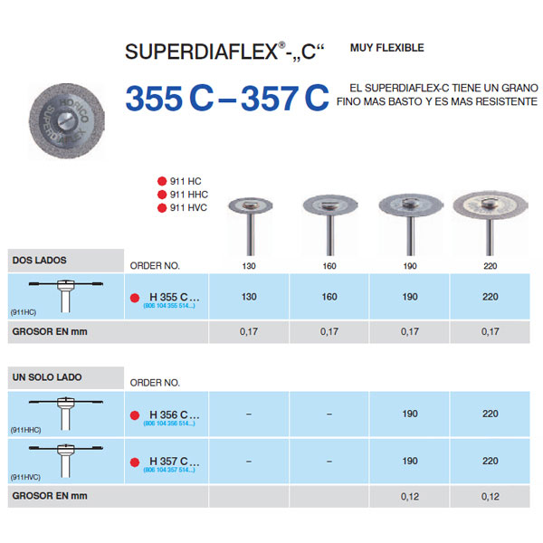 Disco de diamante Superdiaflex C. Muy flexibles. Diamantado a dos caras. Para separación de carillas de cerámica y de plástico. Disco de ?19 mm. Grosor: 0,17 mm.