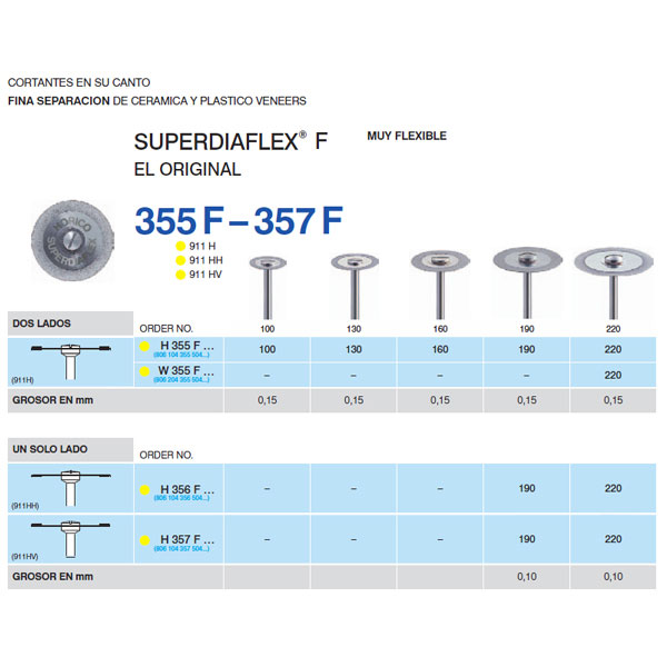Disco de diamante Superdiaflex f. Muy flexibles. Diamantado a dos caras. Con el canto cortante. Para separación de carillas de cerámica y de plástico. Disco de ?19 mm. Grosor: 0,15 mm.