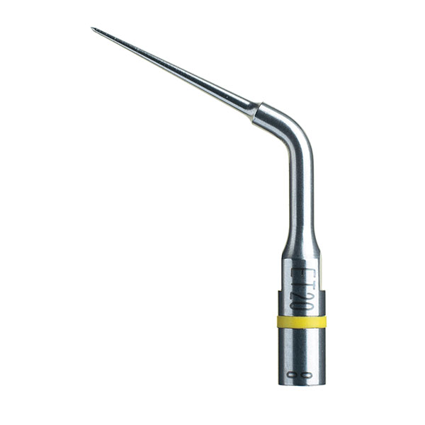 Inserto de retratamiento,longitud 20 mm yconicidad del 6%El inserto de acero ET20 se utiliza en el 1er tercio coronario: Extracción de productos de relleno, conos de plata e instrumentos fracturados. Eliminación de residuos y de la capa desuciedad.