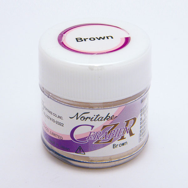 Presentación: Bote 10 gr. Modificador de dentina, color Marrón para sistema CZR. CZR es una nueva gama de cerámica diseñada específicamente para ser utilizada con estructuras de Zirconia. Por su elevada resistencia a la flexión, las coronas realizadas con CZR pueden utilizarse tanto en posteriores en anteriores debido a su resistencia a la flexión. La combinación de CZR y zirconia le dará una excelente estética la máxima fuerza para una restauración general superior.