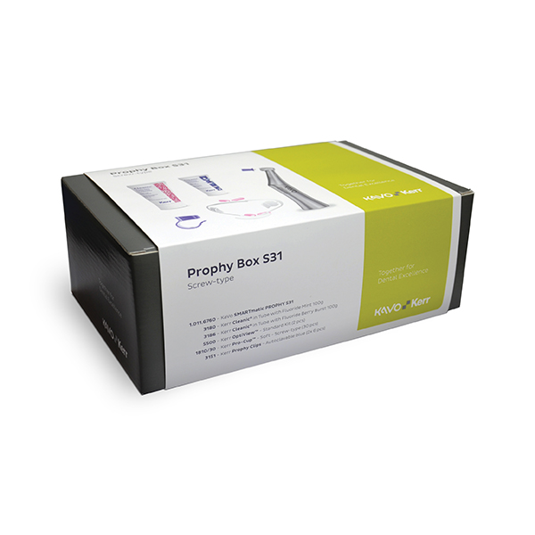 Prophy Box de Kavo Kerr es una oportunidad única para probar una gama de consumibles Kerr combinada con una pieza de mano de profilaxis KaVo SMARTmatic, en un paquete integral de profilaxis.