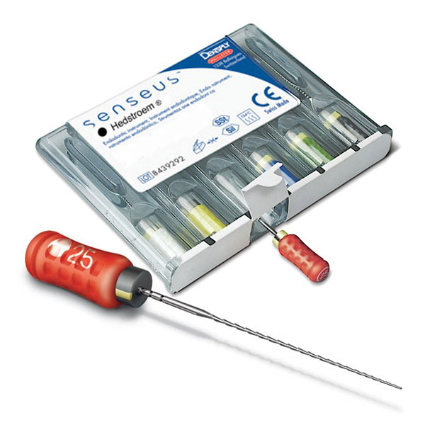 Nuevo modelo de instrumento endodóntico, provisto de mango de silicona de mayor tamaño, más ergonómico. Mejora notablemente la sensibilidad del instrumento cuando se utiliza con guantes. Anillos de calibración visibles en la radiografía. Punta guía a 55º no cortante. A partir del número 55, 75º. Alta eficacia de corte.
