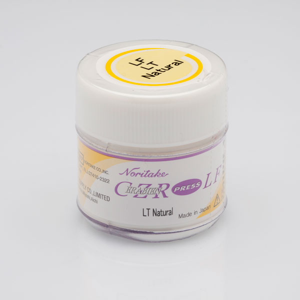 Presentación: Bote 10 gr. Porcelana Luster, color LT Natural para sistema CZR Press Lf. LT Natural es usado principalmente sobre el borde incisal y la superficie proximal para reproducir la alta transparencia que se ve en los ancianos. Porcelana Luster (translucidos opalescentes) esta diseñada para recrear las sutiles complejidades del color y textura del esmalte natural. Debido al fino tamaño de las partículas que la componen, la porcelana Luster puede lograr un reflejo selectivo, lo cual asegura una Opalescencia que luzca como el diente natural. La Porcelana Luster Noritake exhibe un mínimo desgaste en la boca debido a partículas mas pequeñas y consistentes, dando por resultado un menor desgaste de los dientes antagonistas.