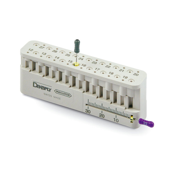 Versión reducida del tradicional Endo-M-Bloc metálico. Instrumento ideal para medir la longitud de las limas, puntas de papel y Gutapercha utilizando una sola mano. La medición de los stops de las limas es automática al introducir el instrumento en el agujero con la indicación de la medida deseada.La medición es posible con una precisión de cerca de 0,5 mm. Los stops estarán ordenados en cuanto los instrumentos salgan de la caja de esterilización. Si durante el tratamiento quiere verificarse la longitud del trabajo, el mini Endo-M-Bloc dispone de una regleta en su lado anterior para medir el instrumento sucio sin contaminar los orificios.El Mini Endo-M-Bloc soporta todo tipo de esterilización: autoclave, chemiclave, aire, caliente a 200 °C.