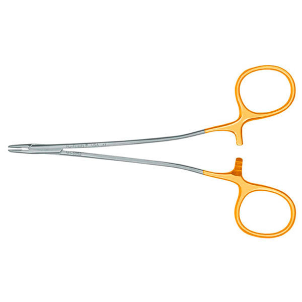 Intrumentos empleados para asir y guiar la aguja cuando se sutura. Los que tienen el extremo dorado, su parte activa está fabricada en carburo de tungsteno, para obtener un mayor agarre de la aguja y mayor duración.