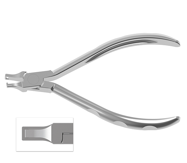 Alicate especial para crear rebajes horizontales para un par de raíz individual. También permite mejorar la retención de alineadores o retenedores.