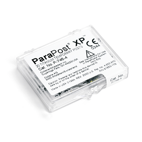 Postes temporales de titanio, cementados pasivos. Postes ideales para situaciones clínicas que requieran la fuerza adicional de un poste de fundición preciso, de una sola pieza.