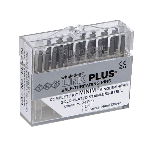 Sistema de pins retentivos fabricados en acero inoxidable. Nuevo diseño con cabezal en forma de llama y color dorado. Realizados con un rosca reforzada para conseguir una mayor retención y facilitar su inserción. Con freno en el cuello y corte de pin automático. Disponibles en cuatro tamaños con código de color y sus correspondientes drills para limitar la profundidad.
