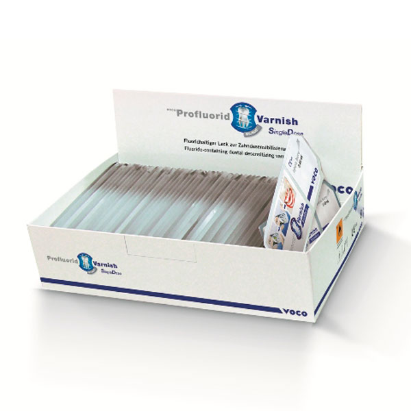 Barniz dental desensibilizante con fluoruros (5% Naf). Tratamiento de dientes hipersensibles. Sellado de túbulos dentinarios. Tratamiento de áreas cervicales después de la limpieza profesional y remoción del cálculo. Barniz del color del diente. Simple de aplicar con una excelente adhesión hasta también a superficies dentales húmedas. Aplicación económica en capas finas.48 monodosis de 0,40 ml. Sabores surtidos.