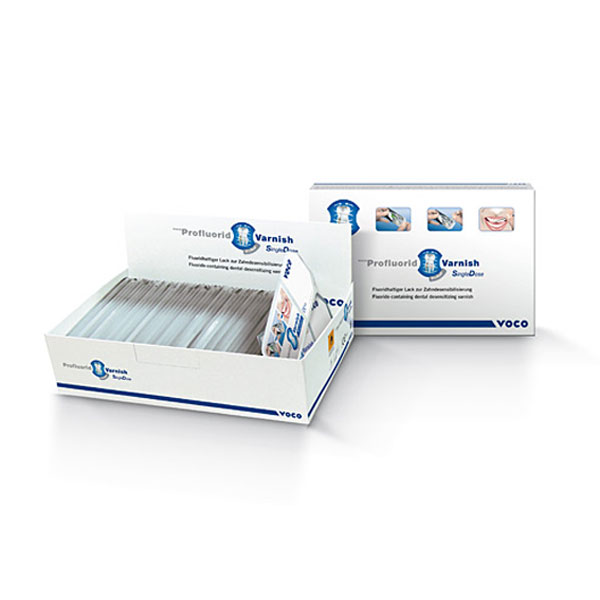 Barniz dental desensibilizante con fluoruros (5% Naf). Tratamiento de dientes hipersensibles. Sellado de túbulos dentinarios. Tratamiento de áreas cervicales después de la limpieza profesional y remoción del cálculo. Barniz del color del diente. Simple de aplicar con una excelente adhesión hasta también a superficies dentales húmedas. Aplicación económica en capas finas.50 monodosis de 0,40 ml. Sabor caramelo.