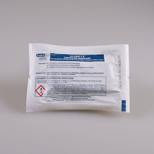 Cepillo de cerdas flexibles + esponja monouso estéril para uñas y manos Tecnoscrub con desinfectante de Yodo al 7,5%.