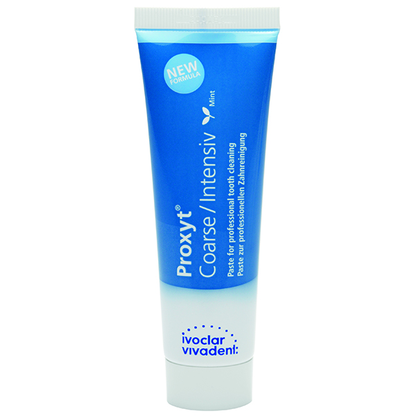 La pasta Proxyt se utilizan para la limpieza y pulido de los dientes de forma profesional.Abrasión de grado grueso.La pasta contienen flúor y xilitol y tienen un agradable sabor a menta.